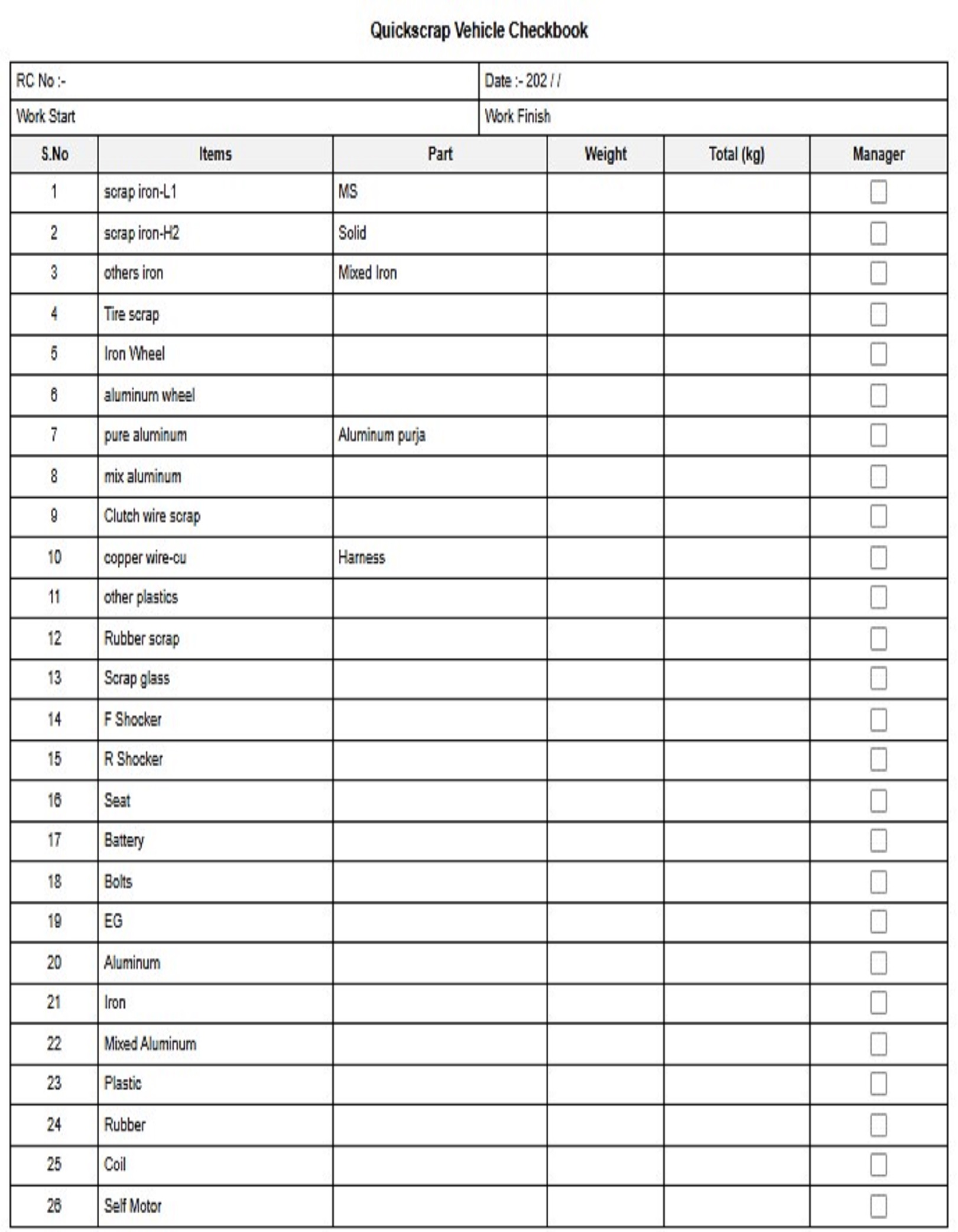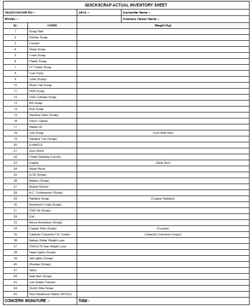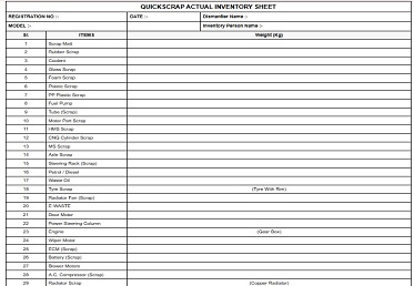 Qauickscrap Actual Inventry Sheet